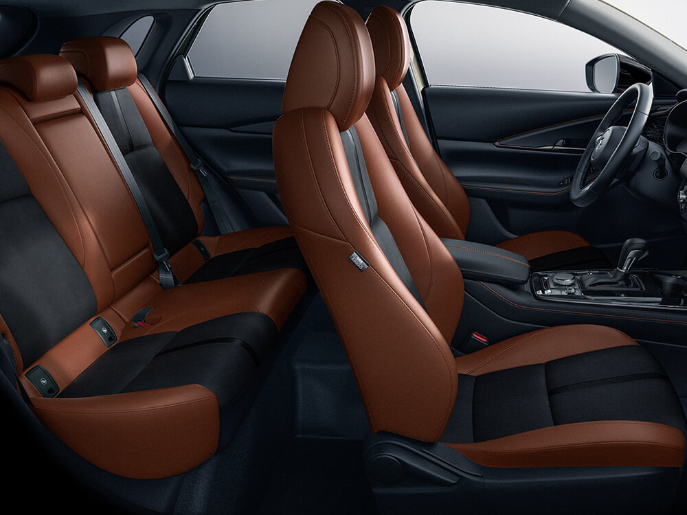 The Suna Edition adds a unique blend of powerful sophistication and adventurous design to the CX-30 lineup. Suna, meaning “sand” in Japanese, helps express the model’s purpose – to evoke a driver’s sense of exploration and joy in every journey. Its luxuriously appointed terracotta/black leatherette-trimmed upholstery evokes the warmth of coastal regions, subtly balanced by the Zircon Sand Metallic exterior finish. A standard turbo engine brings performance to the forefront, offering drivers the best of Mazda comfort, design and power in one compact SUV.