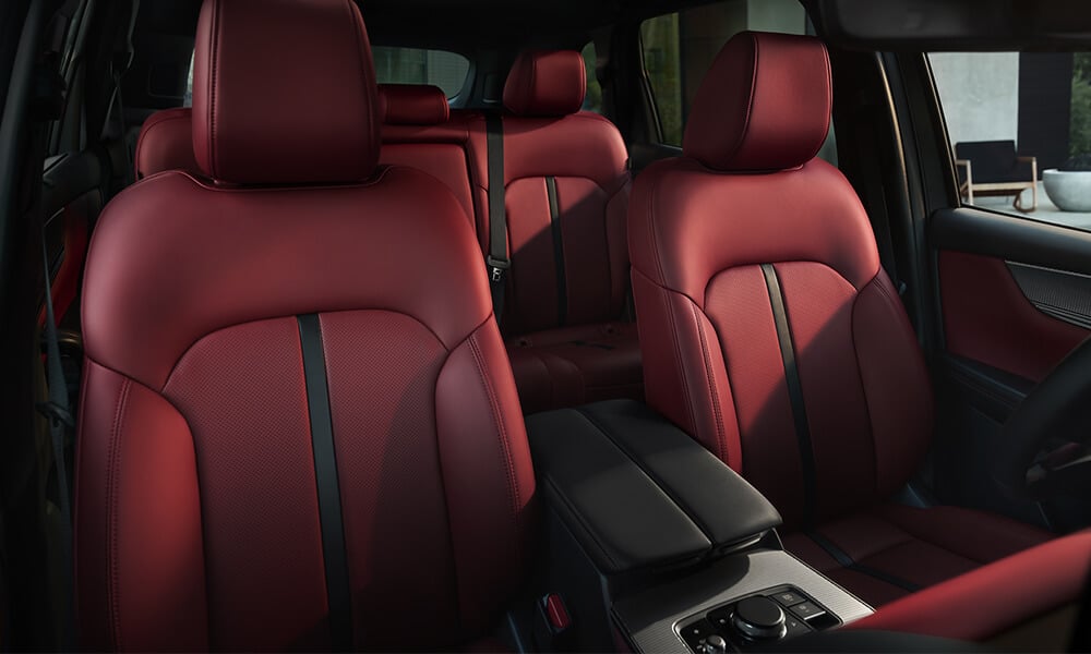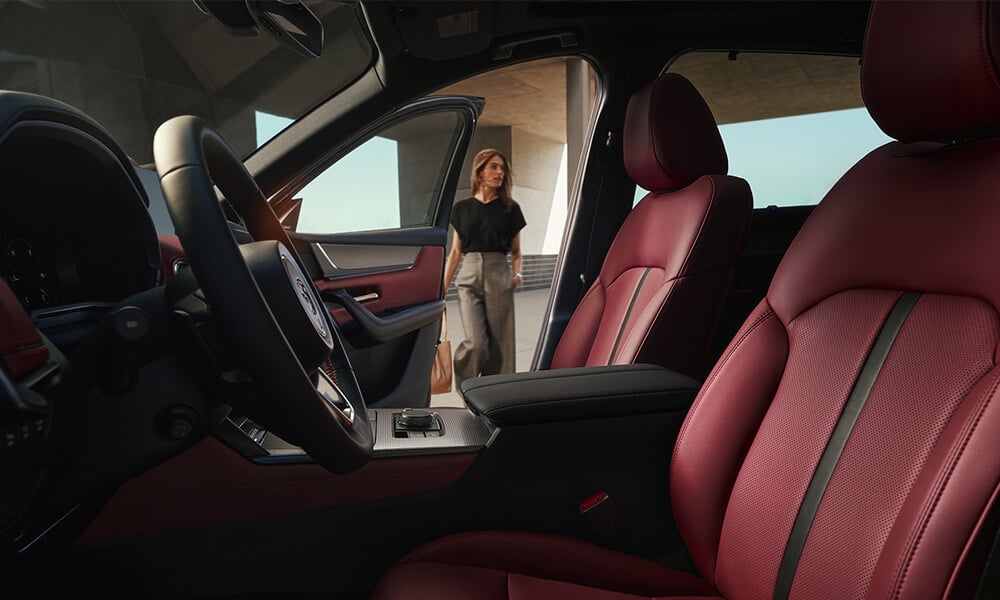 ★Includes: red stitching on steering wheel, Garnet Red leather dashboard mid-panel with stitching and piping, centre console armrest in black with Garnet Red stitching.