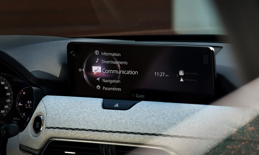 11 Nécessite l’inscription à l’application MyMazda. Le système de navigation en ligne Mazda nécessite l’inscription aux services connectés Mazda pour effectuer les mises à jour en direct. Pour le système de navigation en ligne Mazda installé en usine, la carte SD doit être remplacée au bout de 3 ans pour continuer à recevoir les mises à jour logicielles en direct. Veuillez lire le manuel du propriétaire pour plus d’informations. La base de données est mise à jour jusqu’à 4 fois par an.